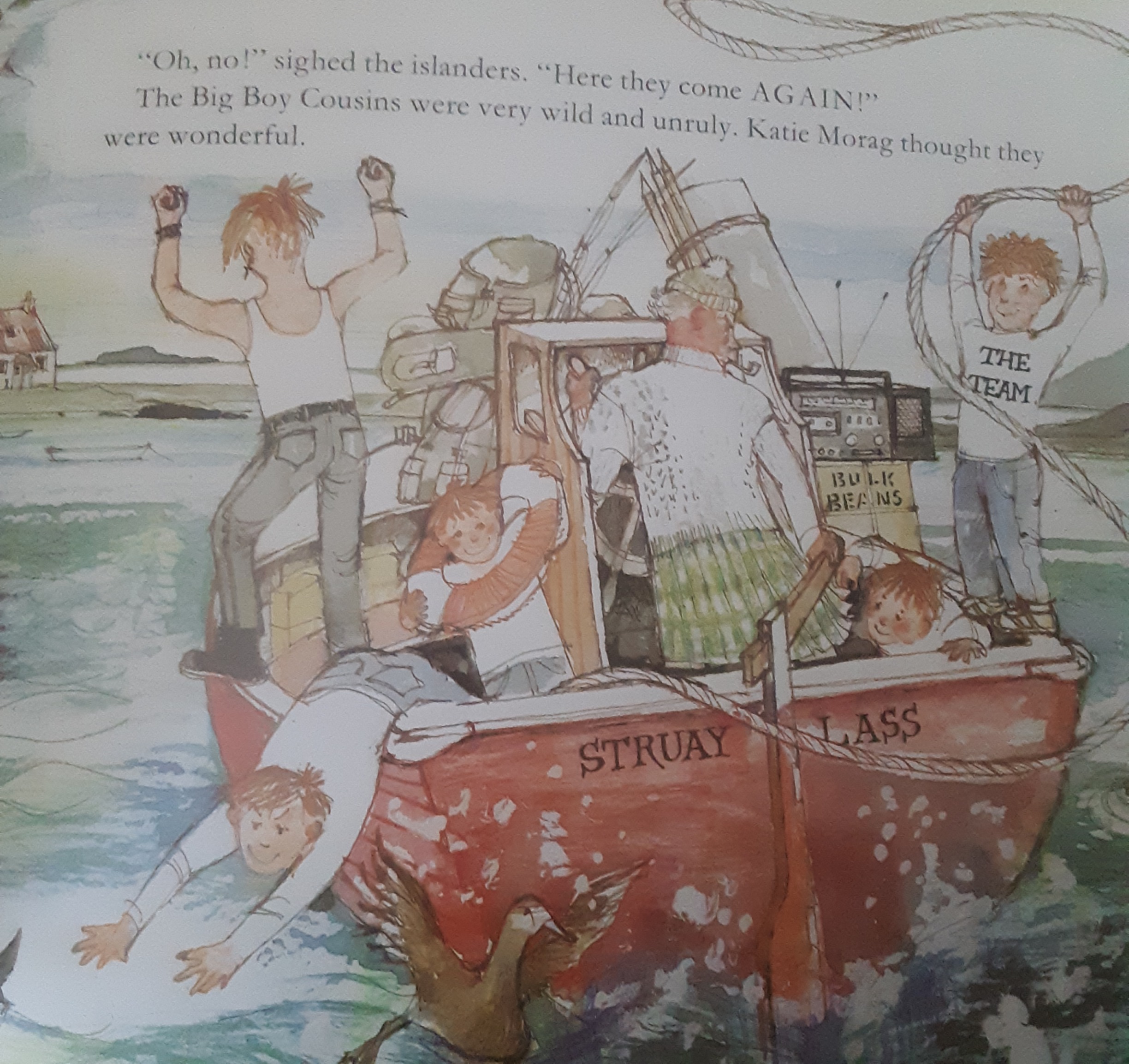 Katie Morag and the Big Boy Cousins by Mairi Hedderick c 1987 Random House Children’s Books : London This edition printed by Red Fox Books in 1999.
